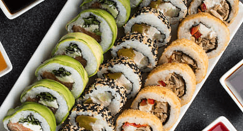 Palta, Ciboulette, Sésamo Mix, Amapola, Chía, Tempura y Panko, Amapola, Chía, Tempura y panko, Tempura y panko merken, Tempura y panko coco, Tempura y panko orégano, Salmón, Queso philadelphia, Mango, Tempura hojuela de maíz dulce.